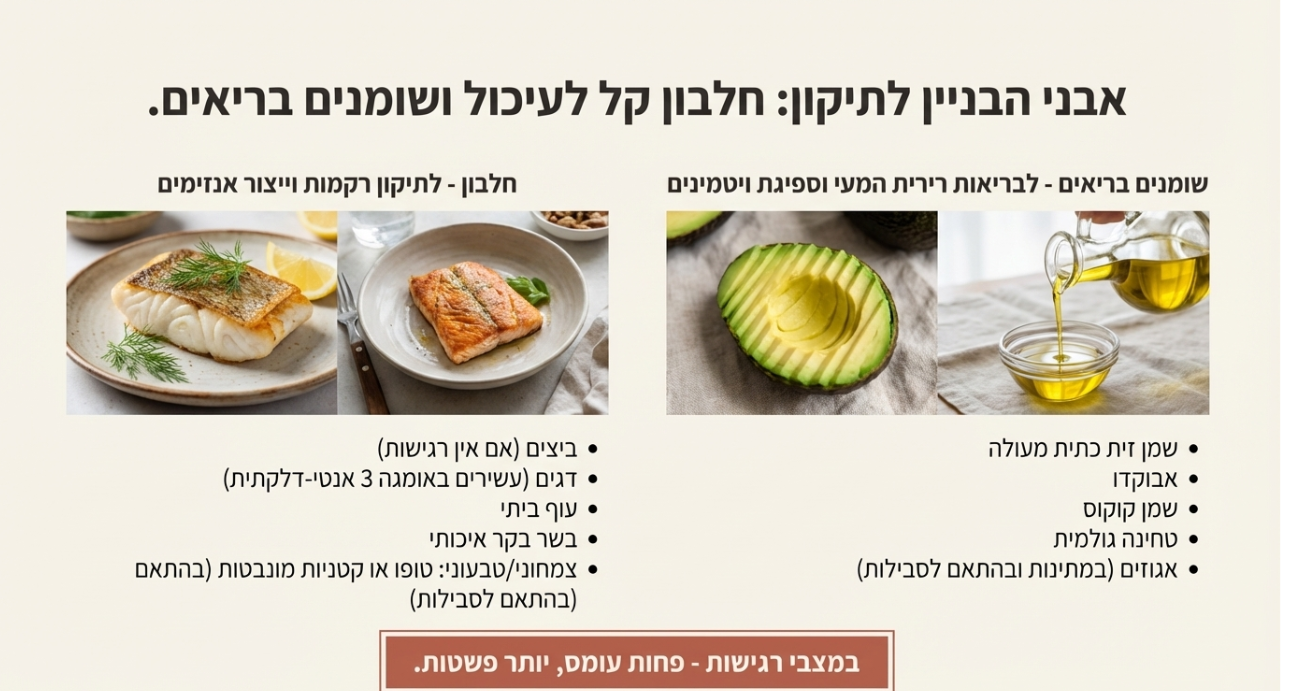 שומנים איכותיים חיוניים לבריאות רירית המעי, לספיגת ויטמינים ולווסת דלקתיות: